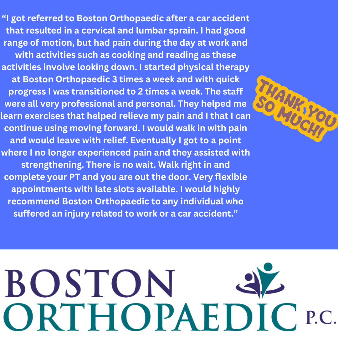 Boston Orthopedic, PC is a multi-specialty orthopedic group that offers orthopedic, chiropractic, and physical therapy care in the Boston, MA areas. Call today.