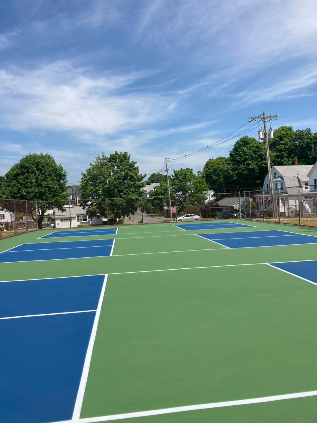 Marrs Park is one of the most popular places to play pickleball in Peabody, MA. There are 3 outdoor hard courts. These are dedicated courts with permanent lines and nets. The courts are free.