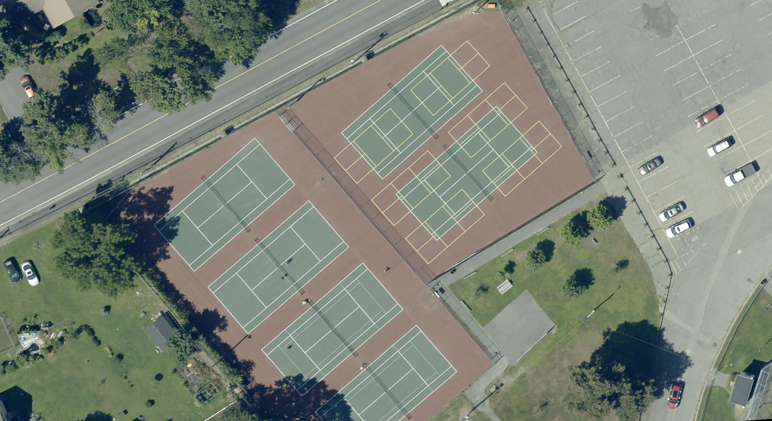 Come play pickleball at Riverside Park in Hudson, MA! There are 6 outdoor courts. The lines are permanent, but you'll need to bring your own net. The courts are free. Players have access to restrooms.
