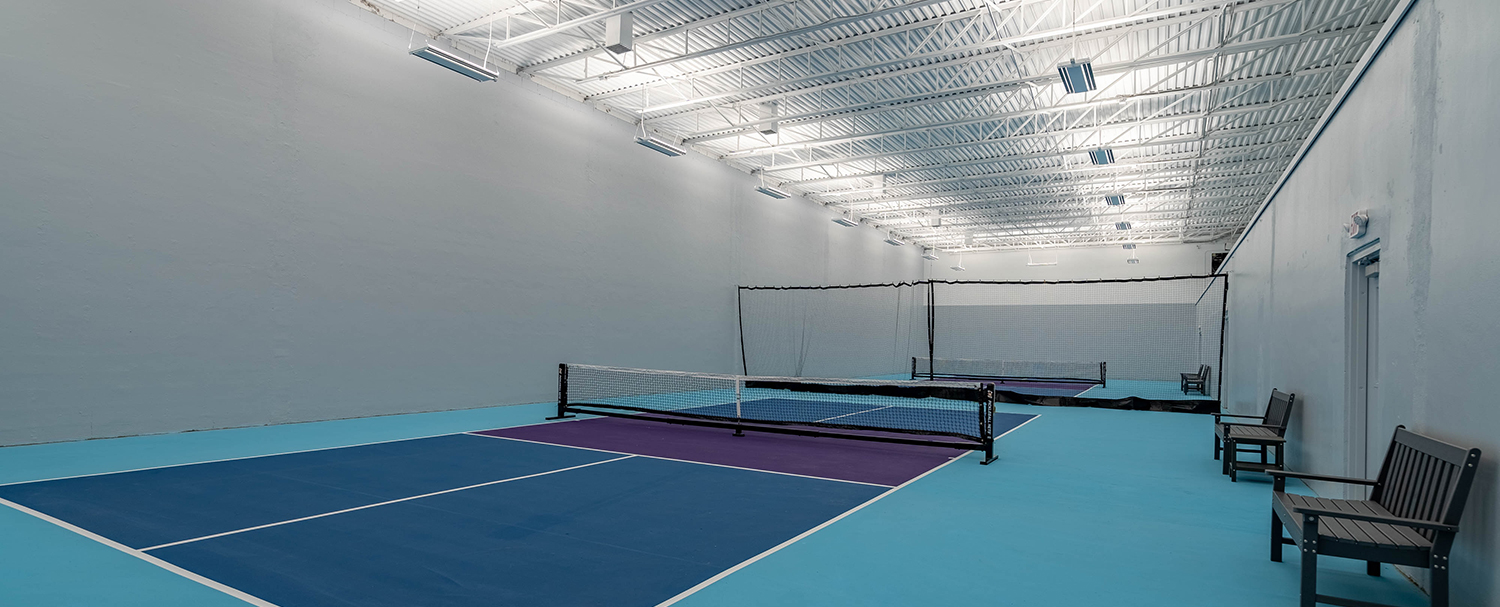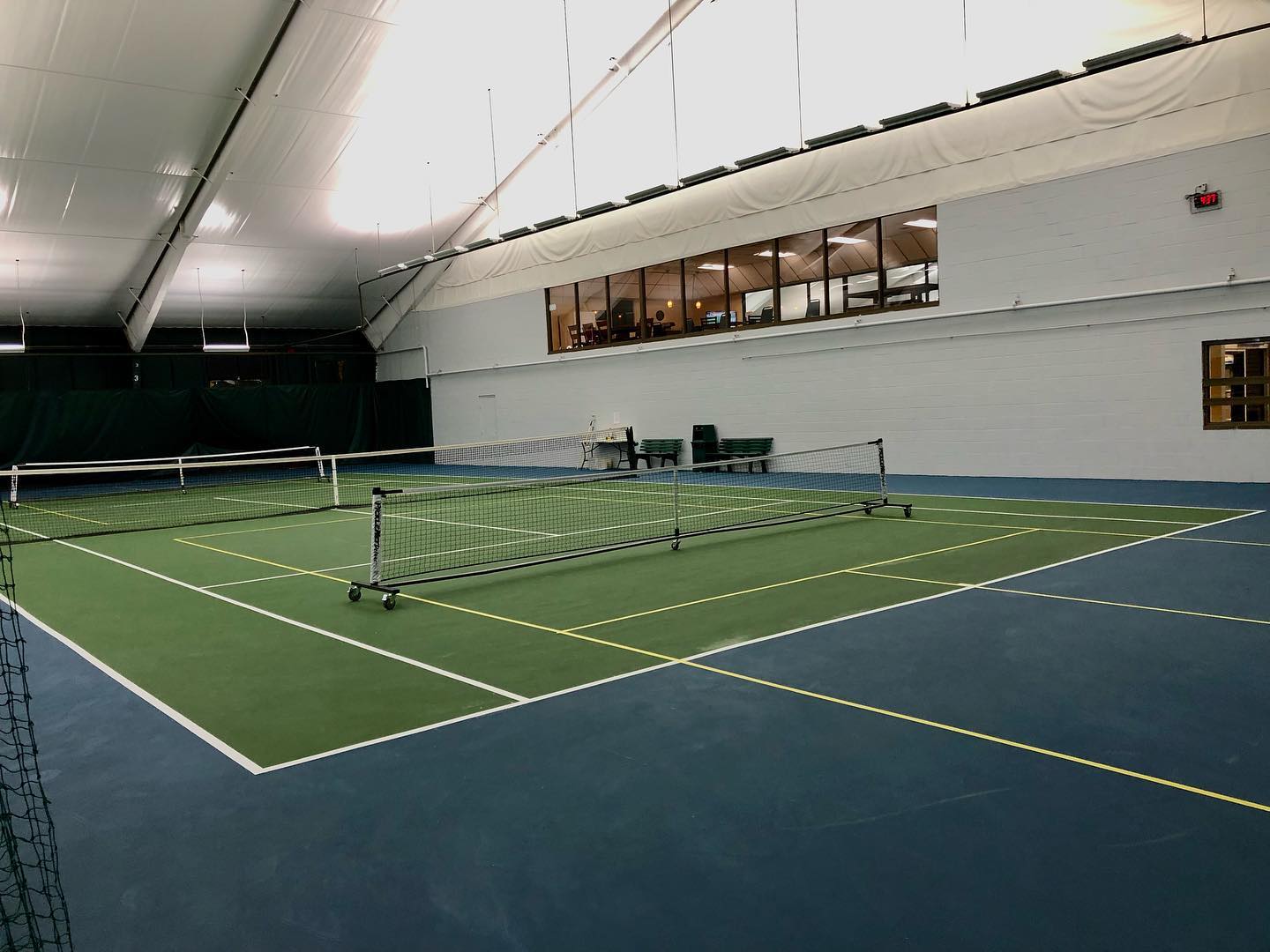 Woburn Racquet Club is a place to play pickleball in Woburn, MA. There are 2 indoor hard courts. These are dedicated courts with permanent lines and nets. The courts can be reserved. Players have access to restrooms, water, and lights.